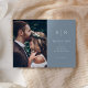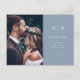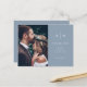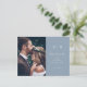 Estas elegantes y modernas tarjetas postales de agradecimiento boda presentan un diseño de texto sencillo blanco y azul polvoriento que exuda estilo minimalista, con tu foto boda personal favorita. Añada sus iniciales o su monograma para hacerlas completamente propias.