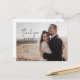 Este moderno boda de fotos en blanco y negro de moda, gracias a postcard, es perfecto para un simple boda. El minimalista diseño boho presenta una tipografía bohemia rústica única y elegante en blanco y negro minimalista. Personaliza la parte posterior de la tarjeta postal con tus nombres, tu dirección de retorno y un mensaje de agradecimiento. Como alternativa, deje en blanco la sección de plantillas de mensajes de agradecimiento para escribir a mano una nota personalizada cuidadosa en cada tarjeta después de su llegada.