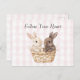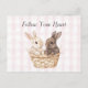 Postal Moda Pink Plaid Stripes Bunnies en una canasta Pas