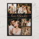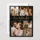 Elegante, Minimalista Boda Gold y Black Script 5 Collage de fotos Gracias Postcard. Moderno boda de agradecimiento plantilla de tarjeta con cinco (5) fotos en la parte delantera y una (1) foto en la parte posterior. Con el texto "Amor y gracias" en una letra de escritura tipográfica con letras a mano rápida en oro sobre color de fondo negro. Agrega tu nombre, fotos y mensaje de agradecimiento. Si prefiere escribir a mano la nota, simplemente elimine el texto de ejemplo para hacer más espacio. Por favor, contáctame si necesitas ayuda con este diseño.