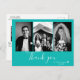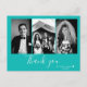 Boda clásico gracias postal que incluye una foto en el frente y en la parte posterior, "Gracias" en una elegante letra de escritura blanca, y mensaje de agradecimiento de texto personal.