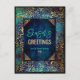 Postal Moda turquesa floral purpurinas Navidades año nuev