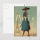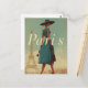 Este elegante afiche vintage captura un momento romántico parisino: una mujer con un vestido de los años 50 que corre se para en un lugar elegante junto al río Sena, mirando hacia la Torre Eiffel. El lugar está bañado por tonos cálidos y nostálgicos, con suaves reflejos en el agua y una arquitectura parisina clásica. El arte evoca el encanto intemporal de la París de mediados de siglo, combinando la moda vintage con monumentos emblemáticos. Una pieza perfecta para los amantes de la elegancia retro, París y el arte de viajes clásico.