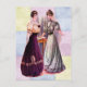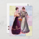 pintura vintage de dos encantadoras señoritas de la época enana vestidas de vintage en una sala con dos rosas rosas rosas rosas sobre una mesa ornamental de bonito, como una dama con un vestido dorado y morado, que luce y se pone de pie con delicadeza, y la otra dama lleva puesto un vestido gris plateado y lleva una nota.