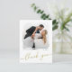 Postal Modern Brush Photo Gold Script Wedding Thank You