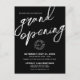 On the front, “Grand Opening” appears in oversized handwritten script calligraphy that stretches across the top and off the edges of the card, giving it a dramatic and sophisticated style. The lower portion includes space for your logo and event details in simple, modern sans serif fonts for a professional finish.