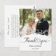 This picture is a wedding thank you card featuring a photograph of a couple, with decorative elements and text.