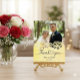 This picture is a wedding thank you card featuring a photograph of a couple, with decorative elements and text.