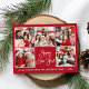 Guión moderno de caligrafía divertida Feliz Año Nuevo 5 tarjeta postal de vacaciones de Collage de fotos - fondo rojo