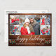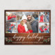 Moderna caligrafía Script 5 Foto Pareja Collage de fotos Felices Fiestas Postcard incluye Navidades de acuarela Holly Berries - Rústico Campo Madera