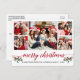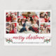 Moderna caligrafía Script 5 Collage de fotos de la familia fotográfica Merry Christmas Postcard incluye Navidades de acuarela Holly Berries - Guión rojo