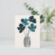 Un fresco conjunto de flores verde azuladas contrasta maravillosamente con un florero de rayas blancas brillantes y un fondo naranja.