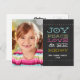ENVÍE LOS BUENOS DESEOS A LA FAMILIA Y A LOS AMIGOS CON ESTA TARJETA DE FELICITACIÓN MODERNA DEL DÍA DE FIESTA DE LA FOTO DE LA PIZARRA DEL NEGRO DE LA ALEGRÍA. ELKE CLARKE© PARA LA GALERÍA DEL MONOGRAMA. LA ALEGRÍA, PAZ, AMOR Y SEA FELIZ. Usted puede "modificarla para requisitos particulares" y cambiar el color de las palabras para hacer juego su foto. Añada su propia foto, saludando el mensaje y texto en el frente de la tarjeta, tal como su apellido, o su inicial del monograma o sus nombres. La opción es la suya a ser creativa y para hacer le todos los sus los propios. AÑADA MÁS TEXTO Y FOTOS A LA PARTE POSTERIOR DE LA TARJETA SI USTED DESEA. Substituya la foto de la muestra por su propio retrato del navidad de la familia.