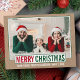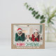 Foto de la familia navideña moderna de Feliz Navidad con tarjeta postal de vacaciones verdes y rojas
