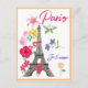 Postal Moderna Floral Paris je t'aime Eiffel Tower Travel