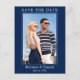 Moderno Minimalista Simple Guardar La Fecha Invitación De Compromiso De Fotos - Azul Marina