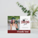 Esta foto graduación gracias postal ofrece un marco fotográfico personalizado y acentuado con un estilo de bloque de color de marrón y blanco. La clase 2025 aparece con el tapón de graduación sentado encima del "0".