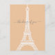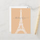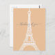 Imagen de la silueta de la Torre Eiffel blanca de estilo minimalista sobre fondo melocotón. Personalizable "pensando en ti" texto