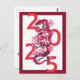 Personalizar tus tarjetas de felicitación de Año Nuevo chino lunar con tu propio mensaje de personalizado y nombre de familia. Hermoso diseño de serpientes rojas y rosadas con flor de flores de flores de cerezo y gran texto de 2025. Fácil de personalizar la plantilla de mensajes y nombres. Desee a todos sus amigos y salud familiar, felicidad, suerte y prosperidad para el nuevo año con este diseño audaz, moderno y único.
