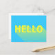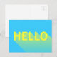 Salude a la familia y amigos con esta vibrante tarjeta azul que presenta un moderno diseño abstracto de un "Hola" amarillo con un degradado de sombra largo. *Tenga en cuenta que la marca de agua Zazzle que aparece en la vista previa del zoom NO aparecerá en el producto impreso final. © Rosewood y Citrus