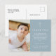 Postal Moderno agradecimiento de bautizo con foto en azul