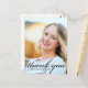 Graduado escrito en elegante caligrafía negra sobre la foto de tu retrato de graduado hace una hermosa tarjeta de agradecimiento de graduación minimalista. Personaliza con tu nombre y clase de secundaria o universidad de 2024 debajo de la tipografía cursiva.