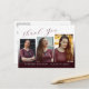 Esta moderna y elegante tarjeta de "Gracias" de graduación de 3 fotos, presenta elementos de diseño de texto moderno fusionado con un estilo de caligrafía manuscrita. Sus fotos de graduación se muestran en la parte frontal de la tarjeta, mientras que la parte trasera ofrece espacio para texto personalizado para un mensaje de agradecimiento o puede dejarse en blanco si desea escribir su mensaje a mano. Un gradiente blanco elegante se desvanece a un rojo burgundy en la parte frontal de la tarjeta o se puede personalizar fácilmente a un color de su elección.