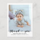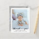 Postal moderna para el anuncio de nacimiento de bebé con foto. Diseño que incluye escritura de agradecimiento, foto única del bebé, estadísticas de nacimiento, fecha y un nombre en el frente. Personaliza con otra foto y tu mensaje de agradecimiento en la parte de atrás.