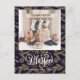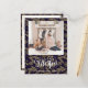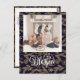 Envíe personalizable y saludos personalizados de vacaciones a amigos, colegas y familia en festividades de diseño fotográfico simple, moda, elegante y moderno, tarjetas de estilo minimalista natural! Una hermosa caligrafía dorada de "Bendito" encuadra la parte inferior de la foto delante. Debajo de la foto se muestra el mensaje de bienvenida de su personalizado de nombre de familia en tipografía moderna. Reverso para revelar unas hermosas hojas de árbol de Navidad dorado y copos de nieve con fondo azul marino oscuro.