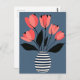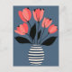 Los pétalos de cobalto audaces florecen sobre un jarrón de rayas rosas, que evoca un humor lúdico de mediados de siglo sobre una base de coral suave.
