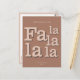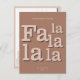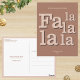 Fácil de personalizar, solo personaliza estas simples y modernas tarjetas postales Fa la la la la la no foto Navidades con tu nombre para una forma divertida de difundir la alegría de las vacaciones. El diseño de la tipografía minimalista incluye letras en negrita en tonos de tierra cálidos, con una sombra de gota oscura y un fondo marrón de chocolate mocha y una plantilla de texto en la parte inferior para tu nombre y el año. Cada tarjeta de vacaciones Fa la la la postcard se revierte a un blanco sólido con un borde cálido de color marrón, espacio para su dirección de retorno y una plantilla de texto para el texto de sus Navidades personalizados o puede eliminar el mensaje de marcador de posición. Estas tarjetas de vacaciones personalizadas sin tipografía fotográfica postcard en colores tierra de café mocha y el color marrón mezclan blancura y tradición con un moderno diseño gráfico mínimo.