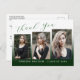 Esta elegante y moderna tarjeta de graduación de 3 fotos "Gracias", presenta elementos de diseño de texto moderno fusionados con un estilo de caligrafía manuscrita. Sus fotos de graduación se muestran en la parte frontal de la tarjeta, mientras que la parte trasera ofrece espacio para texto personalizado para un mensaje de agradecimiento o puede dejarse en blanco si desea escribir su mensaje a mano. Un gradiente blanco elegante se desvanece a un verde cazador-bosque en la parte frontal de la tarjeta o fácilmente personalice esto a un color de su elección.