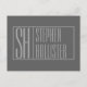 Postal Moderno, gris sobre gris oscuro, iniciales y logot