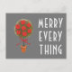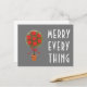 La tarjeta navideña de estilo moderno y minimalista cuenta con un árbol de topiario redondo decorado con un texto blanco "Merry Every Thing" sobre fondo gris. La parte posterior de la tarjeta puede ser personalizada