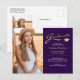 Postal Moderno Script Elegante Púrpura y Oro | 2 Fotos Gr