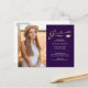Este anuncio de graduación o tarjeta postal de agradecimiento doble faz con 2 fotos, presenta texto moderno fusionado con elegante escritura en color oro y blanco sobre púrpura real. Las fotos están una en el frente y otra en la parte posterior. Para ver más artículos como este, visite mi tienda aquí en "www.Zazzle.com/LakeViewCardCo". Gracias