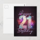 ¡Pasa al centro de la celebración con esta radiante tarjeta postal de cumpleaños número 21, diseñada para hacer que cada momento sea inolvidable! Con un diseño dinámico que estalla de energía juvenil, el "21" brillante y en negrita se destaca orgullosamente en el centro. El fondo emana un ambiente de fiesta elegante con elementos de confeti brillantes, mientras que los acentos vibrantes bailan a través del diseño, agregando una capa de sofisticación alegre.