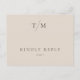 Simple y moderna tarjeta postal RSVP de invitación a bodas en monograma con un texto mínimo y un diseño contemporáneo, con un fondo de arena y texto de color gris negro cálido. Esta moderna tarjeta mongram RSVP forma parte de mi colección de diseño de estilo mixto y Boda de correspondencia, que incluye todos los colores de fondo y fuente coincidentes, simplemente combina y combina tu invitación a una boda monograma con otras papelería boda en temas de color únicos como tonos pastel y tierra. Esta tarjeta RSVP con opciones de comida también está disponible en mi tienda.