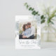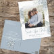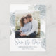 Este hermoso diseño tiene como objetivo guardar un código QR boda de fecha con el sitio web para más información, una foto simple ahorrada, con un follaje de vegetación floral azul polvoriento, una plantilla de diseño de imagen de 1 foto, una elegante pareja moderna, una flor botánica de boda, fotos de compromiso postal, con un guión moderno de pincel de caligrafía, una tipografía minimalista y elegante, sencillamente, guardar fecha con elegante plantilla de rosas florales