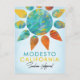 Bright, colorful Modesto California design that is 100% Sunshine approved. Warm colors of red, orange, turquoise and aqua in a watercolor style pattern on a pretty blue shaded background.
