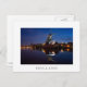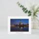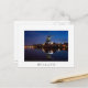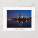 Tarjeta postal fotográfica del molino de viento 'Salamander' con reflejo en el agua del río Vliet con luces encendidas al comienzo de la noche en la ciudad de Leidschendam en los Países Bajos con un borde blanco y el texto 'Holland'.
