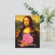 Postal Mona Lisa Con Bouquet De Rosas Rosa