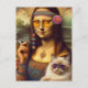 Una joven hippie Mona Lisa posa con su cigarrillo y su gato Himalaya divertido IA generada por el arte