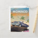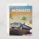 Cartel de viaje en coche de Mónaco y una hermosa puesta de sol.
