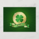 Ilustracion del Día de San Patricio con una moneda de oro con champagne con letras en negrita y un elegante fondo verde.