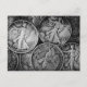 Disfruta de esta fotografía en blanco y negro de las monedas de cincuenta céntimos de Walking Liberty.