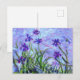 Postal con el aceite de Claude Monet apinando Lilac Irises (1914-1917). Hermosas flores moradas en un mar de verde. Paisaje natural sereno. Un gran regalo de Monet para los amantes del impresionismo y el arte francés.
