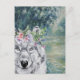 Hermosa y artística compilación presenta la Mañana en el Sena de Claude Monet como fondo con retrato de lobo gris con cubierta floral de acuarela.