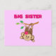 Un mono lindo con una flor rosa balanceándose por su cola desde una rama y un texto rosado dice "Gran Hermana" en camisetas de la hermana mayor, cadenas de llaves, tarjetas, pegatinas, bolsas de té, imanes, mousepads, almohadas, y otras prendas y regalos de la hermana mayor.