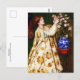 Postal con la pintura de arte fino, Monna Rosa (1867) de Dante Gabriel Rossetti (1828-1882). Retrato de una mujer con un vestido dorado bordado cortando una rosa rosada de un ramo. Rossetti era un poeta e ilustrador nacido en Inglaterra, hijo de un poeta italiano. Su arte se caracteriza por su sensualidad. También fundó la Hermandad Previolácea.